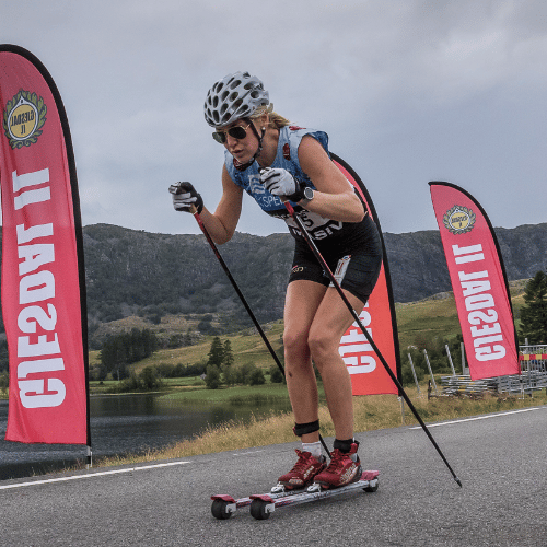 "Før kunne jeg ikke hoppe på trampoline! Etter 2 måneder med hypopressiv trening kan jeg hoppe så mye jeg vil uten noe form for lekkasje. I tillegg har jeg fått tilbake en god holdning og kroppskontrollen jeg hadde som yngre. Som idrettsutøver har jeg nok presset kroppen min for hardt i perioder. Det har ført til muskelspenninger i magen og nedpress. Å miste kontakten med kjernemuskulaturen har vært frustrerende, og i perioder har det vært smertefullt. Takket være hypopressiv trening og jevnlig oppfølging fra Sadie har jeg fått tilbake kontroll over kjernen min. Det er helt essensielt for at jeg skal fungere på trening, i konkurranser og ikke minst i hverdagen."